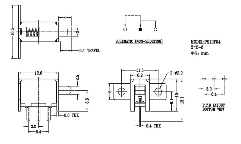 按鍵撥動開關技術參數: