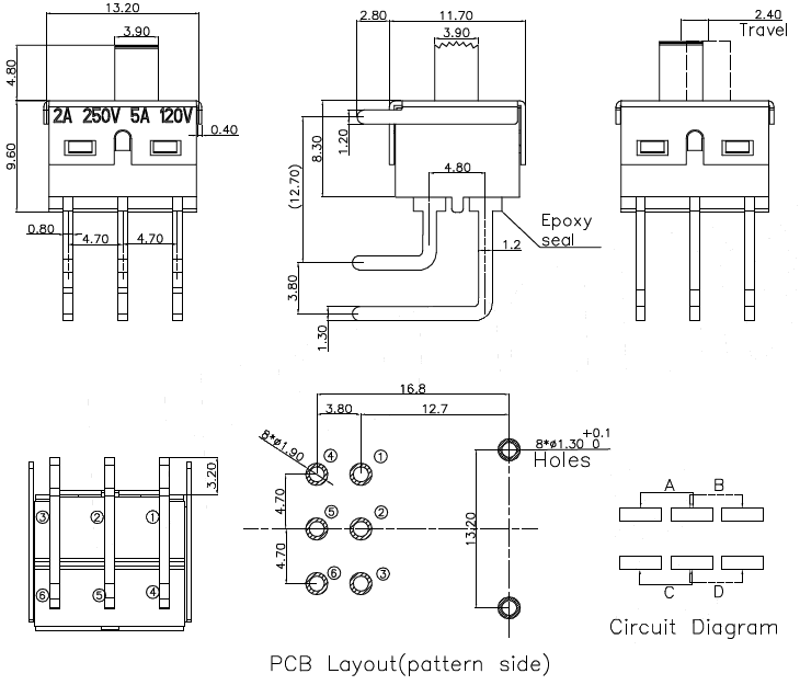 按鍵撥動開關技術參數: