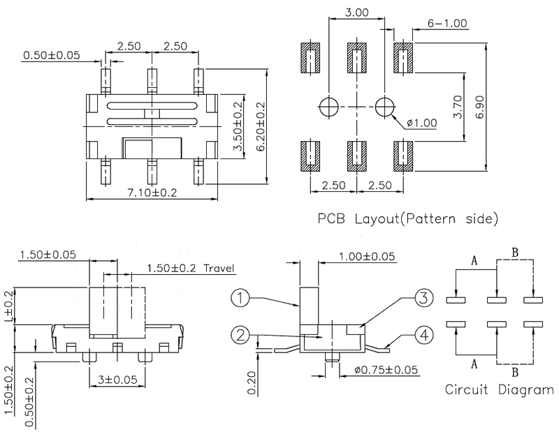 最近老是接到客人問六腳撥動開關是怎么焊接,電路圖是什么原理以下為大家簡單介紹下六腳兩檔/三檔撥動開關原理圖: