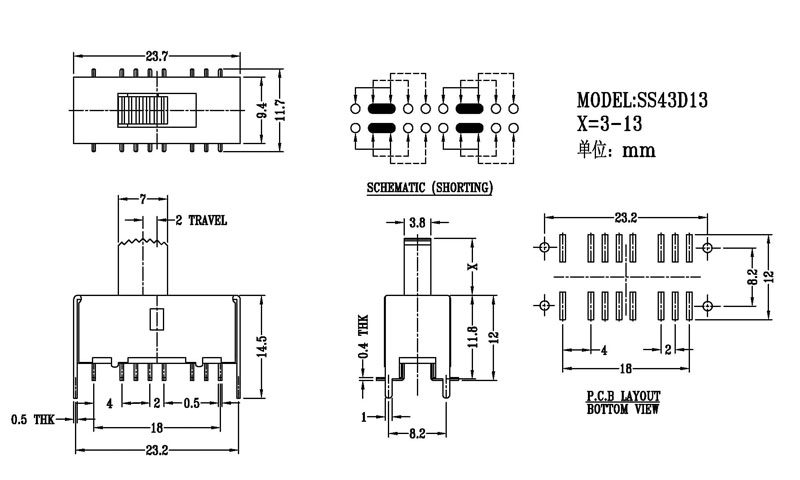貼片三檔撥動開關-貼片滑動開關-切換開關廠家,結構牢固,多檔位,撥動力度均勻檔位感好,廣泛用于玩具電話機收音機家用電器等產品!
