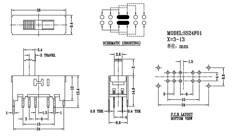 微型撥動開關技術參數: