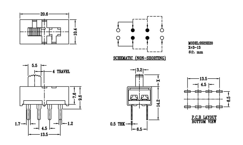 微型撥動開關技術參數: