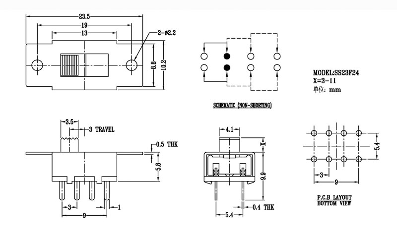 微型撥動開關技術參數: