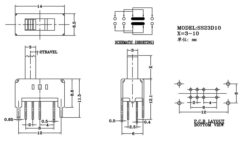 微型撥動開關技術參數: