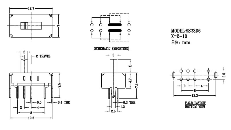 微型撥動開關技術參數: