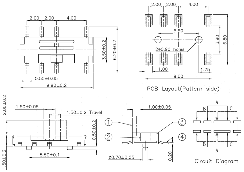 微型撥動(dòng)開(kāi)關(guān)技術(shù)參數(shù):