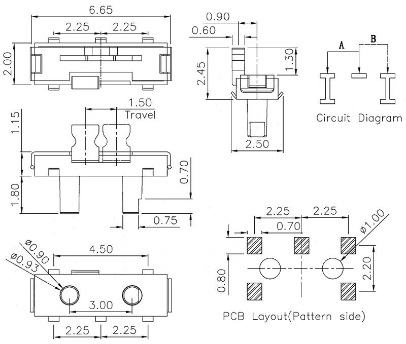 微型撥動開關技術參數: